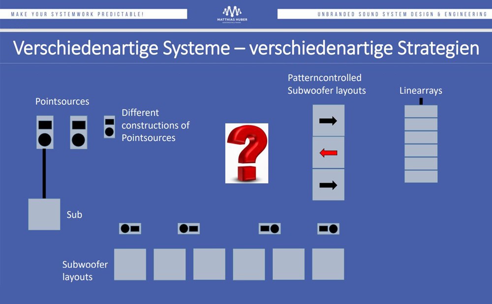 Selbst ausgebildete Veranstaltungstechniker beherrschen die wichtigsten Grundlagen kaum und konfigurieren ihre Systeme leider oft suboptimal. So wird dann oft mit Equalizern und zusätzlichen Speakern das Ergebnis nur verschlimmbessert: Unterschiedlicher Sound und Lautstärke an allen Plätzen sind dann meist das unbefriedigende Ergebnis.
