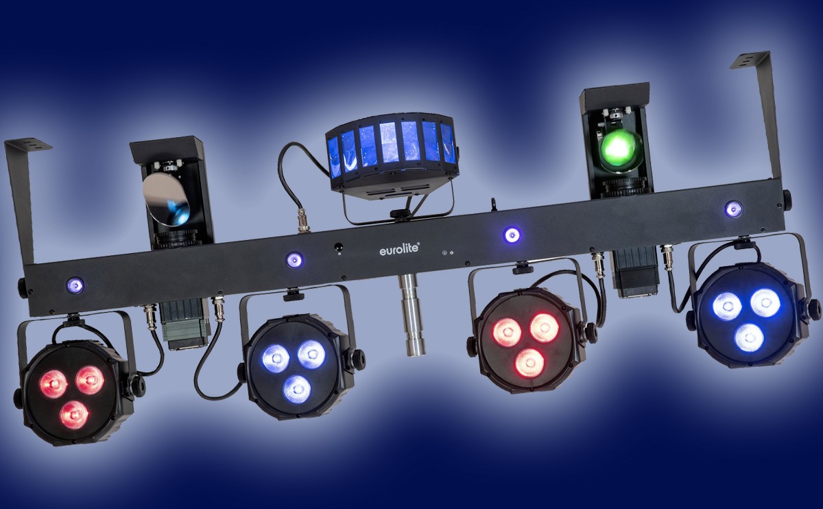 Genau so etwas haben wir hier. Das EUROLITE LED KLS Scan Next FX Kompakt-Lichtset der Firma Steinigke aus Waldbüttelbrunn: