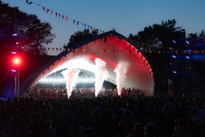 Für die 12-stündige Outdoor-Veranstaltung setzten die Lichttechniker Geräte der Marken Eurolite und Futurelight ein. Nach Einbruch der Dunkelheit sorgte die beleuchtete Festival-Bühne für eine eindrucksvolle Atmosphäre mit Blick auf den Main und die Scherenburg.