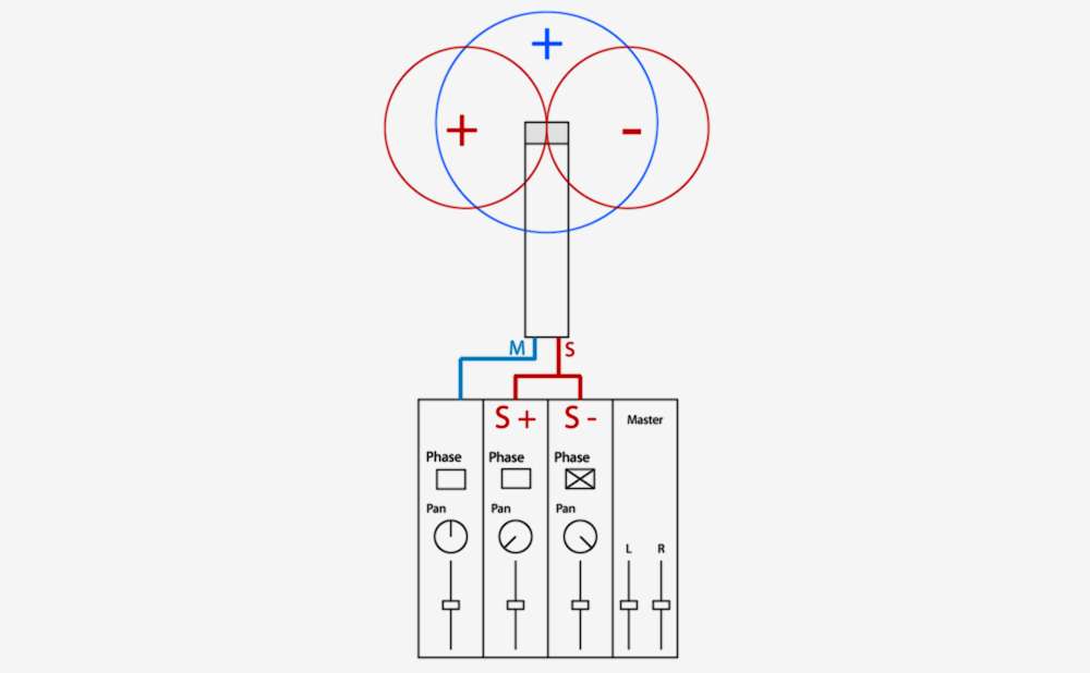 Mikrofonierung und Mischpult-Umwandlung des MS-Signals in LR / © Galak76 für Wikipedia