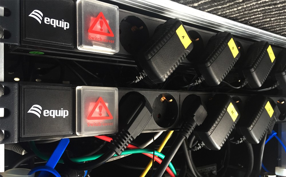 Da ihr vermutlich mehrere Sender betreibt, lohnt sich der Kauf einer oder mehrerer Steckerleisten, die fest mit dem Rack verschraubt werden. Bedenkt dabei bitte, dass manche Sender-Netzteile relativ breit sind, sodass ihr in einer Leiste mit 8 Steckdosen möglicherweise nur maximal vier Netzteile einsetzen könnt.