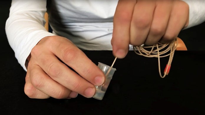 Desinfizieren eines Miniaturmikrofons / © DPA
