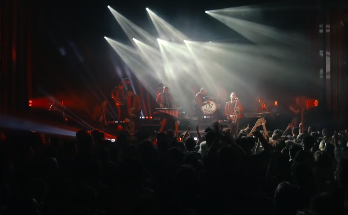 Durch die explosive Kombination aus hypnotisch treibenden Technobeats und expressiv anrangierten Bläsersätzen erzeugt MEUTE ein einzigartiges Live-Gefühl zwischen Clubatmosphäre und großem Live-Event.