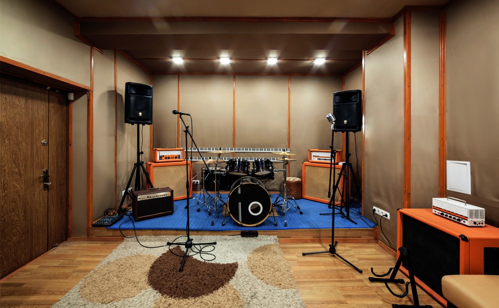 Ihr müsst eine Weg finden, die Schallübertragung (hier insbesondere Körper- sowie Trittschall) über den Boden zu verringern. Bei Schlagzeugern sorgt beispielsweise die Bass Drum oder beim Bassisten der auf dem Boden stehende Amp für tiefe Schallfrequenzen, die über den Boden übertragen werden.