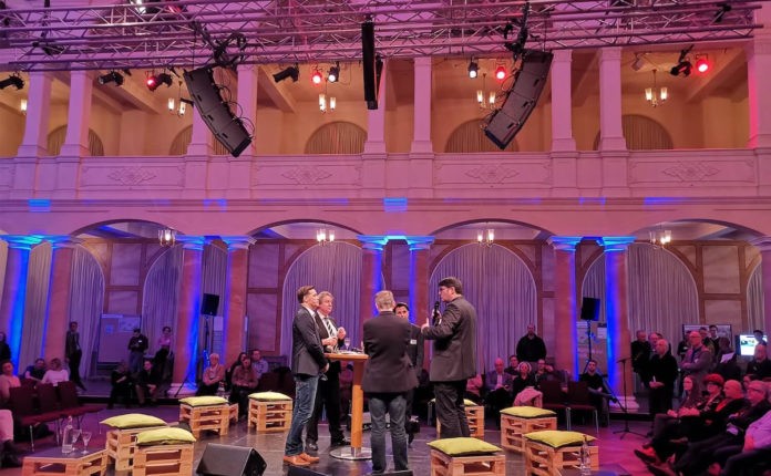 Die hochkarätig besetzte Veranstaltung fand zum Thema Digitalisierung und 5G statt. Kaiserslautern ist eine von fünf digitalen Modellregionen in Deutschland. In der Fruchthalle Kaiserslautern sorgte das beliebte Produkt von SE-Audiotechnik , die M-Line , für eine feedbackfreie 360°-Beschallung. Jörg Kirsch von StageAID hat die Halle ausgestattet und auch die Technik betreut.
