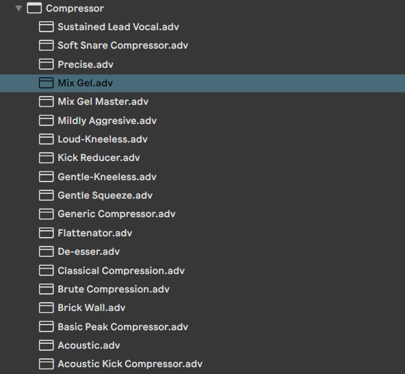Kommen wir zur Compression des Tracks. Ich benutze so einen von Ableton vorgegebenen Compressor (Mix Gel.adv). Du findest ihn unter Audioeffekte → Dynamics → Compressor → Mix Gel.adv