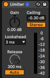 Ein sehr großes Problem bei vielen ungemasterten Tracks ist Übersteuerung. Um dies zu verhindern, setzen wir auf den Masterkanal einen Limiter. Unter “Ceiling” kannst du einstellen, mit welcher endgültigen Lautstärke dein Track herauskommt. Ich persönlich benutze 0,4 dB. Behalte bei deinen Tracks das Endvolumen am besten bei, damit keine unterschiedlichen Maximal-Lautstärken bei rauskommen.