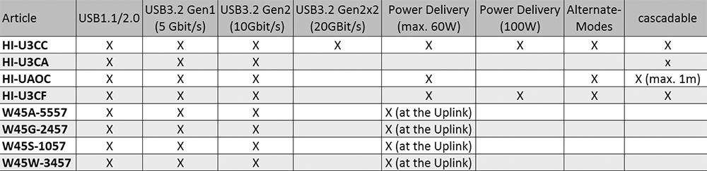 Tabelle Überblick Eigenschaften & Funktionen © Sommer Cable