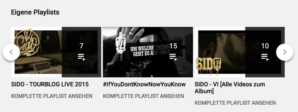 Erstelle Playlists mit allen Musikvideos und setze immer das Neueste an die erste Stelle. Teile oder bewerbe diese auf Social Media Kanälen. Damit sammelst Du bei jedem Musikvideo-Release nicht nur Views auf dem aktuellen Video, sondern auch auf allen anderen in der Playlist.
